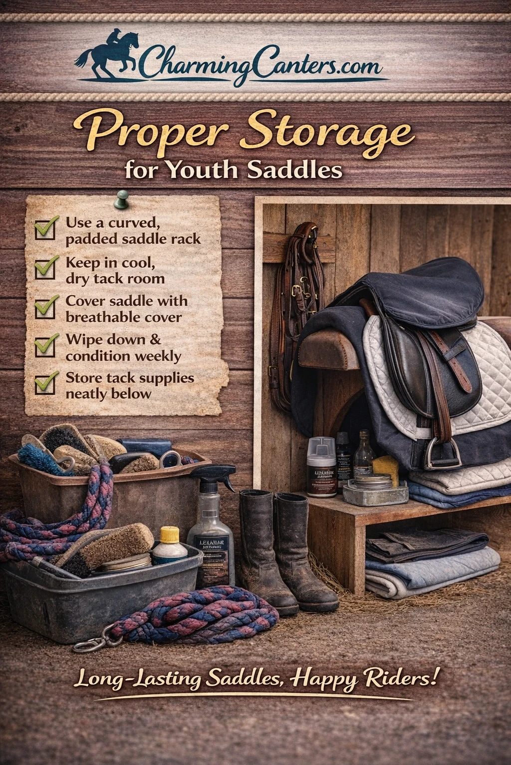 How and where you store a saddle makes a big difference in how long it lasts and how safe it stays. Here’s what works well for my family: