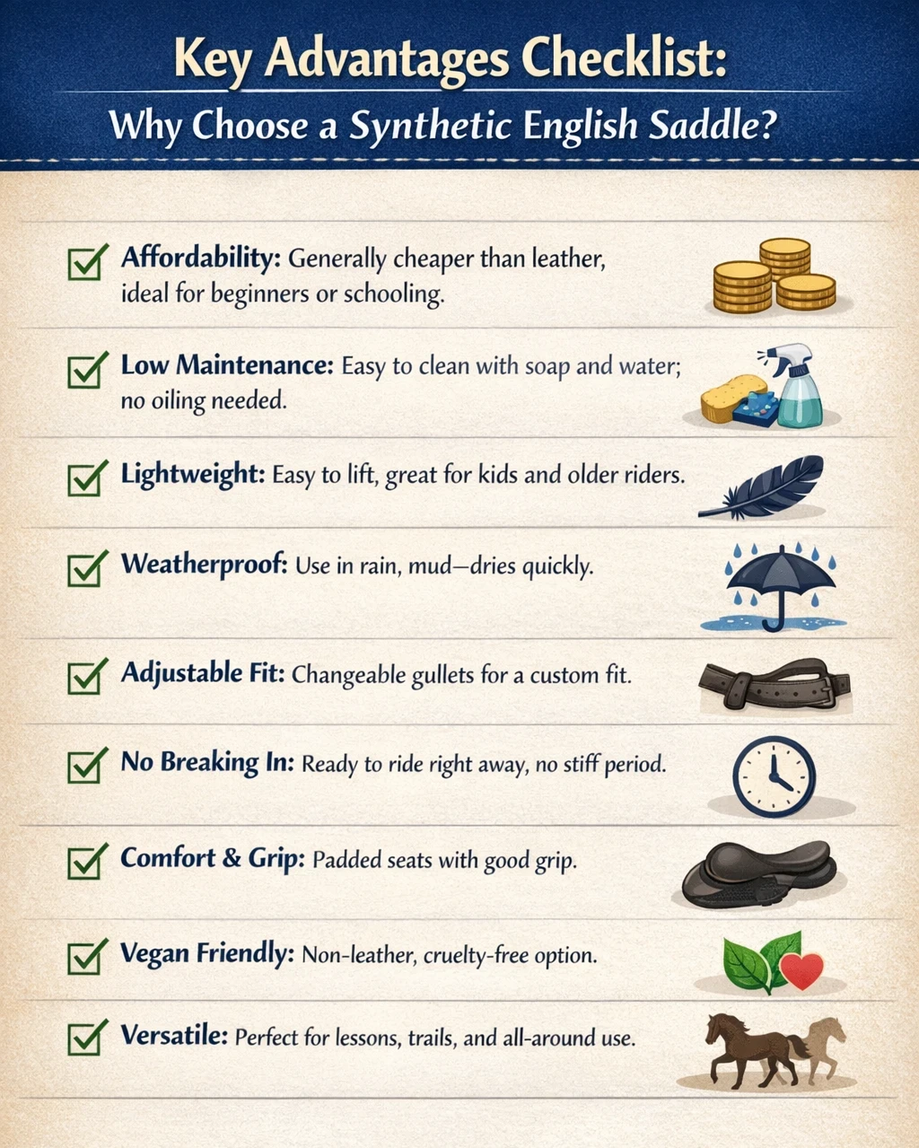 In this guide, I’m sharing what I’ve experienced with synthetic English saddles, highlighting their real-world advantages and some points to keep in mind for different types of riders.