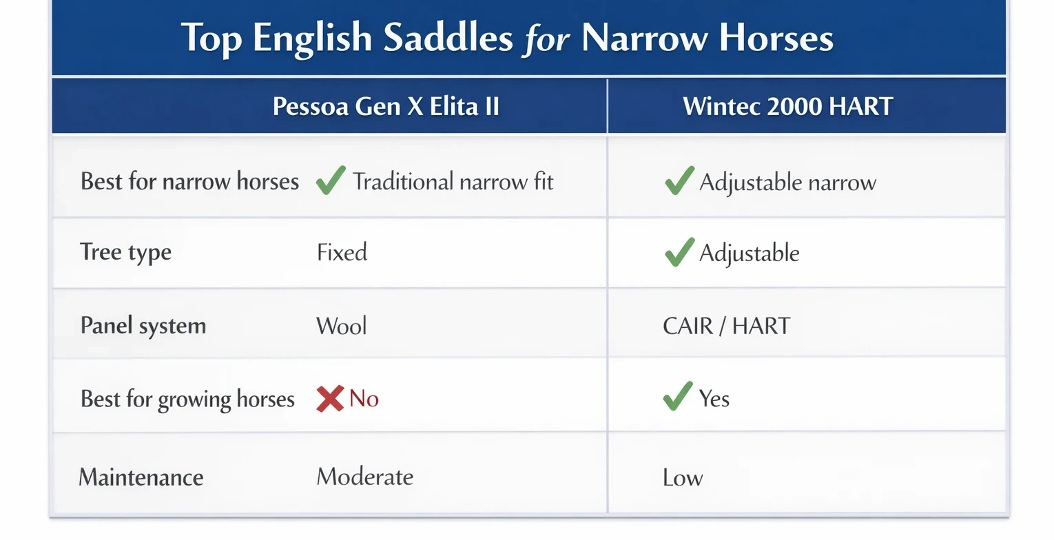 Finding the right English saddle for a narrow horse can be a real puzzle, especially if your horse has a slim build, tall withers, or a changing topline.